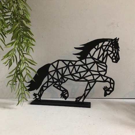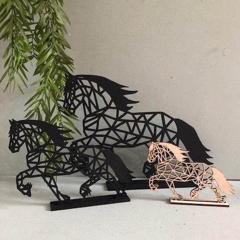 Paarden uit hout gesneden als wanddecoratie. Een plaatje voor aan de muur, en zeker ook heel leuk op een standaard.