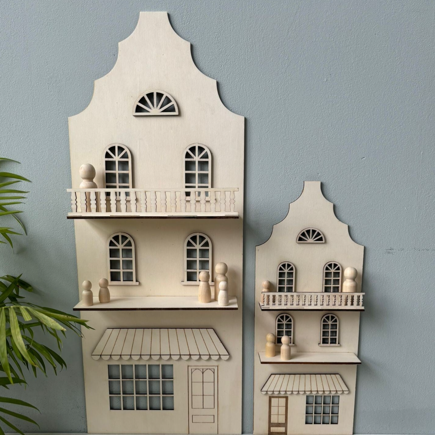 De poppenhuizen zijn gemaakt van hout en ontworpen voor jarenlang speelplezier.