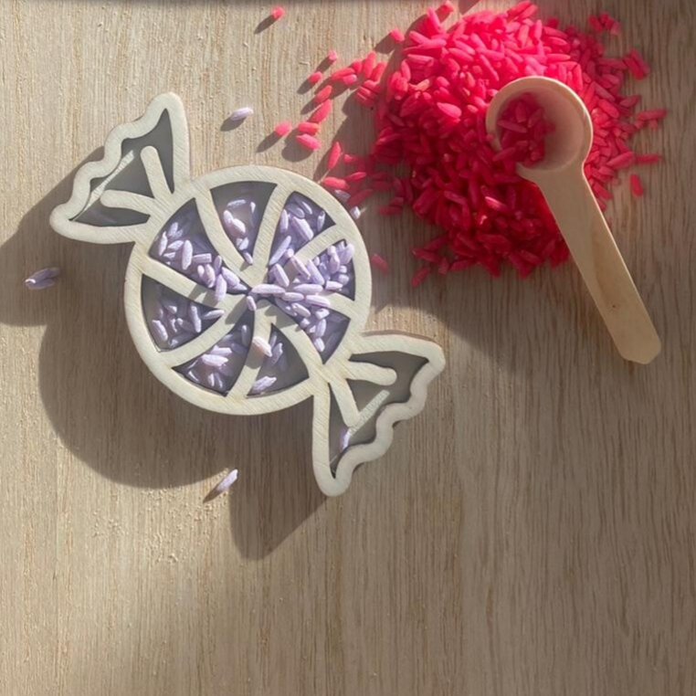 Een mini speelframe in de vorm van een snoepje voor eindeloos speelplezier.