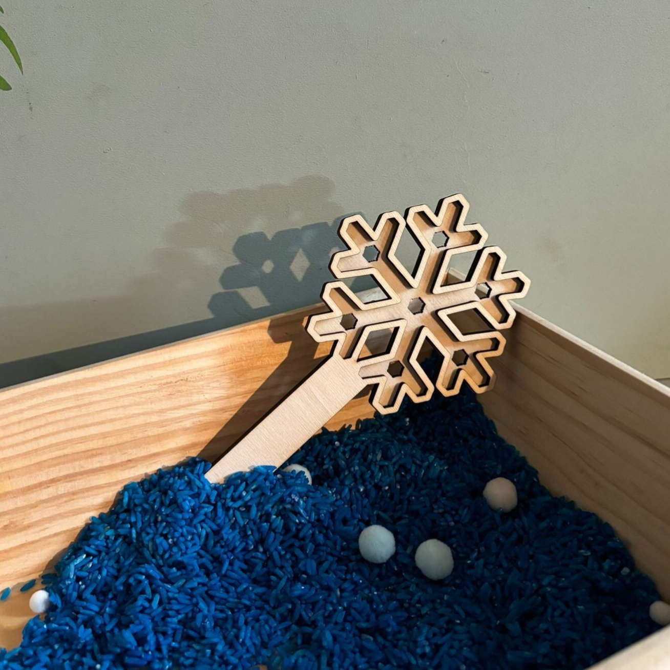 Houten speelzeef in de vorm van een ijsster met gaatjes. Leuk in combinatie met gekleurde rijst en bijvoorbeeld kikkererwten.