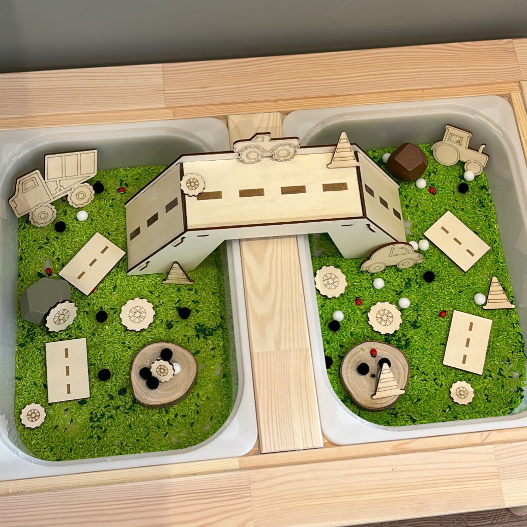 Deze geweldige autobaan is gemaakt voor de trofastbak en flisat tafel van ikea. Deze past precies in het midden van de tafel voor extra speelplezier. Verkrijgbaar in verschillende vormen, zoals een autoweg en ridderkasteel.