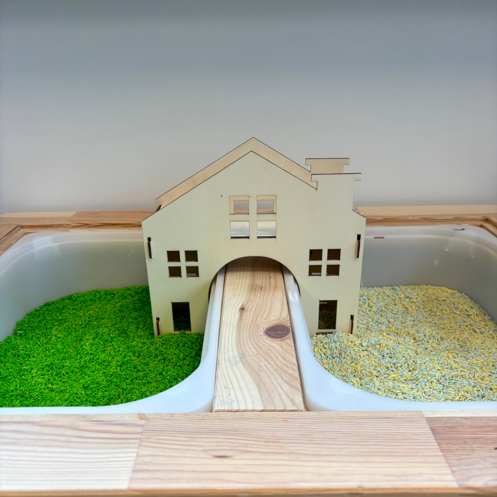 Dit geweldige huis is gemaakt voor de trofastbak en flisat tafel van ikea. Deze past precies in het midden van de tafel voor extra speelplezier. Verkrijgbaar in verschillende vormen, zoals een autoweg en ridderkasteel.