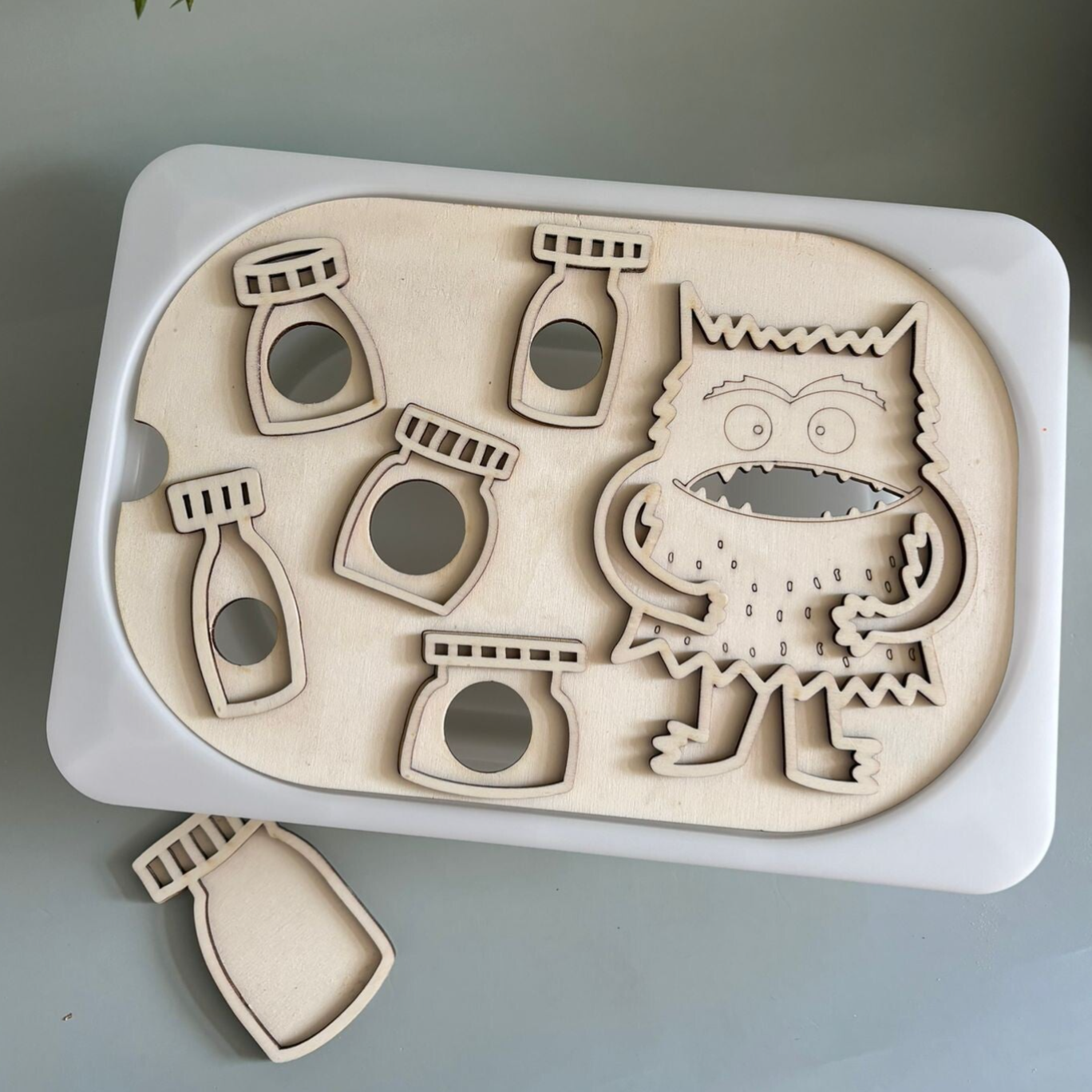 Dit houtenframe is gemaakt voor de trofastbak van ikea. In het thema van het kleurenmonster met potjes en een los potje incl.