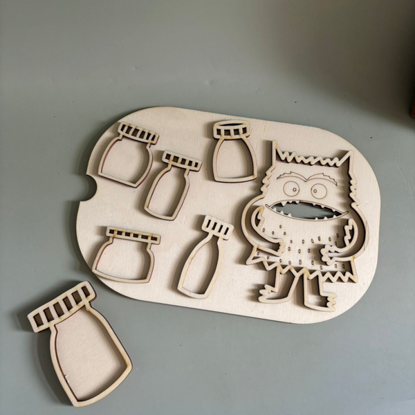 Dit houtenframe is gemaakt voor de trofastbak van ikea. In het thema van het kleurenmonster met potjes en een los potje incl.