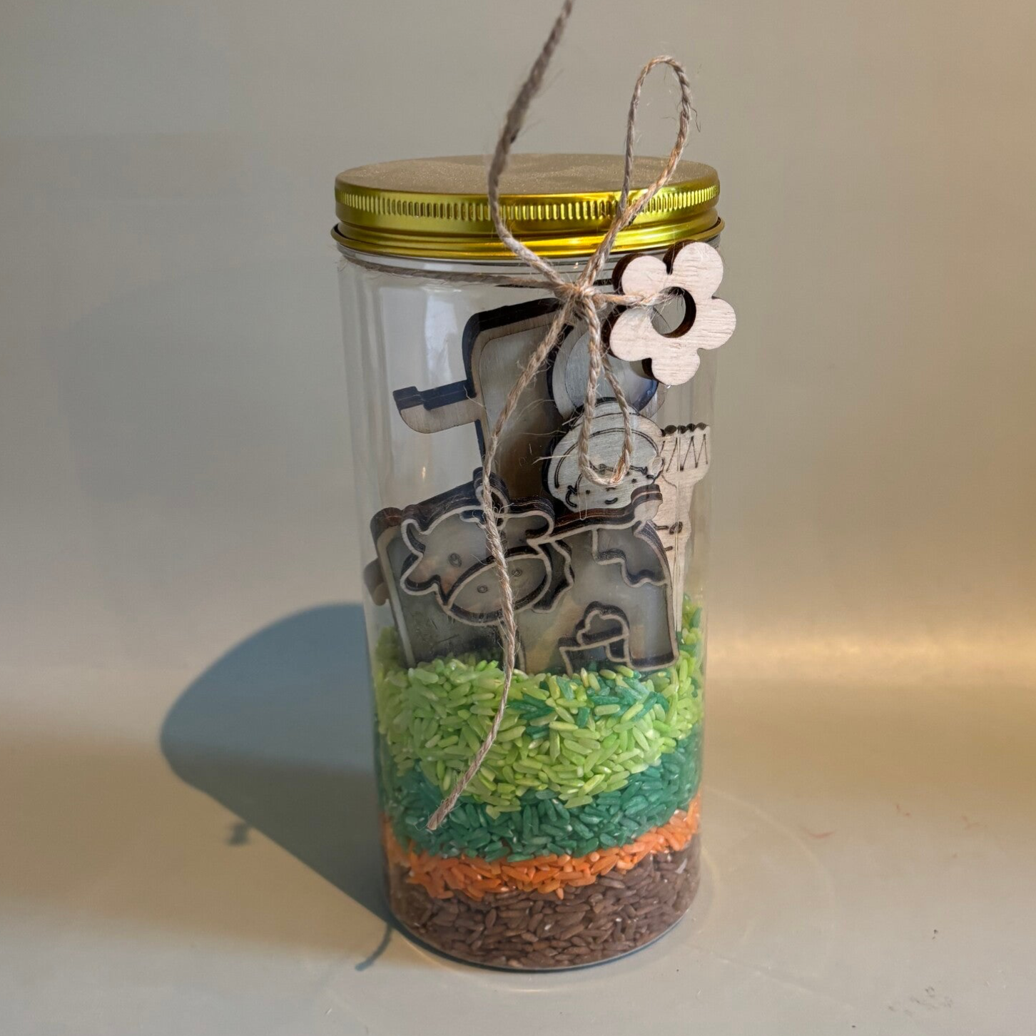 Een complete pot vol met speelplezier. Gekleurde rijst aangepast per thema, de pot bevat: