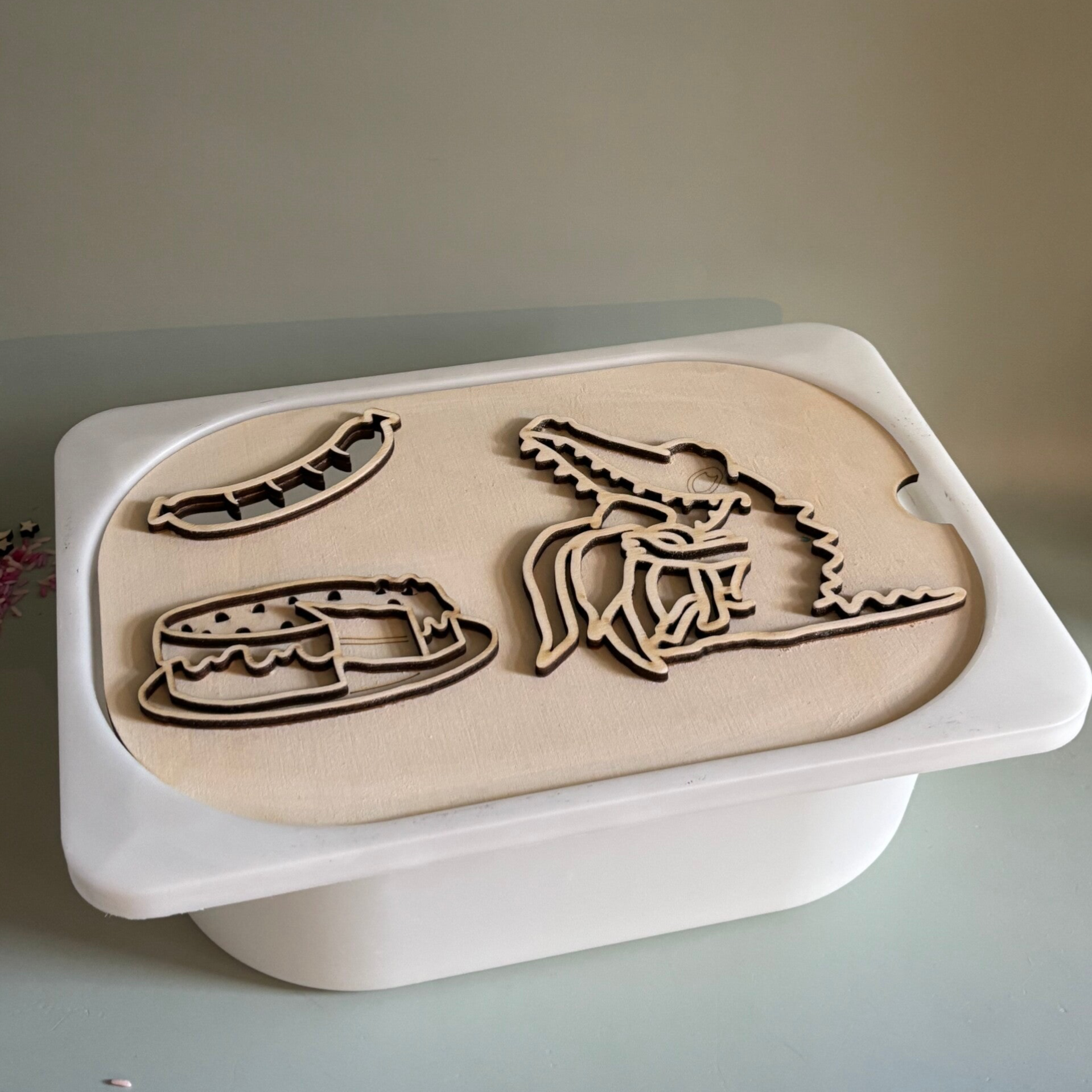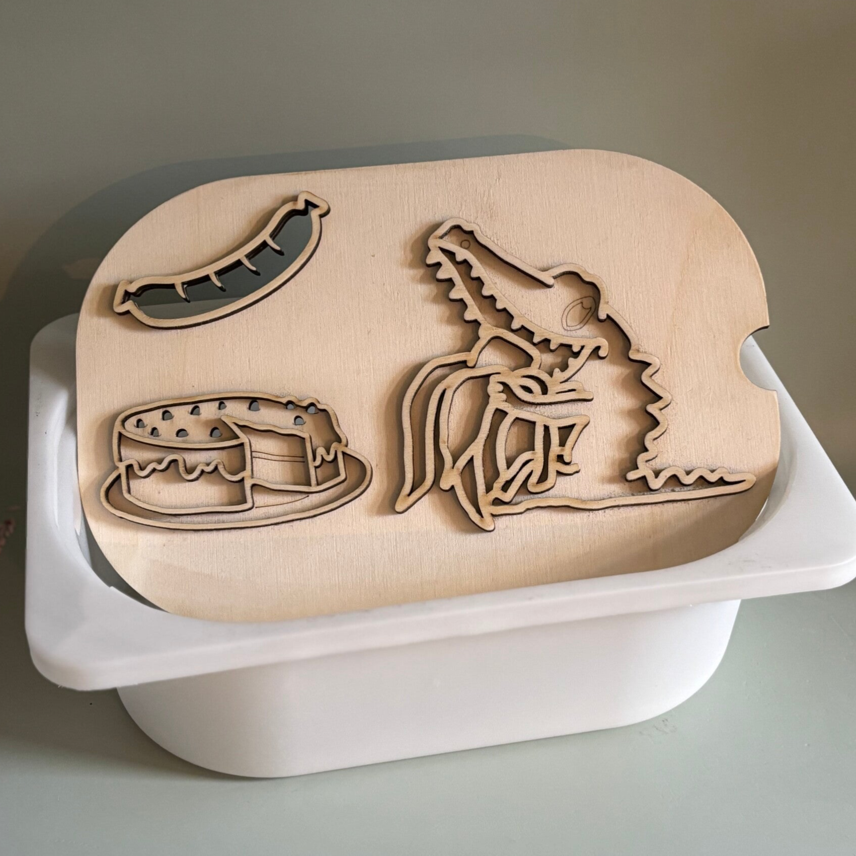 Dit houtenframe is gemaakt voor de trofastbak van ikea. In het thema van de krokodil.