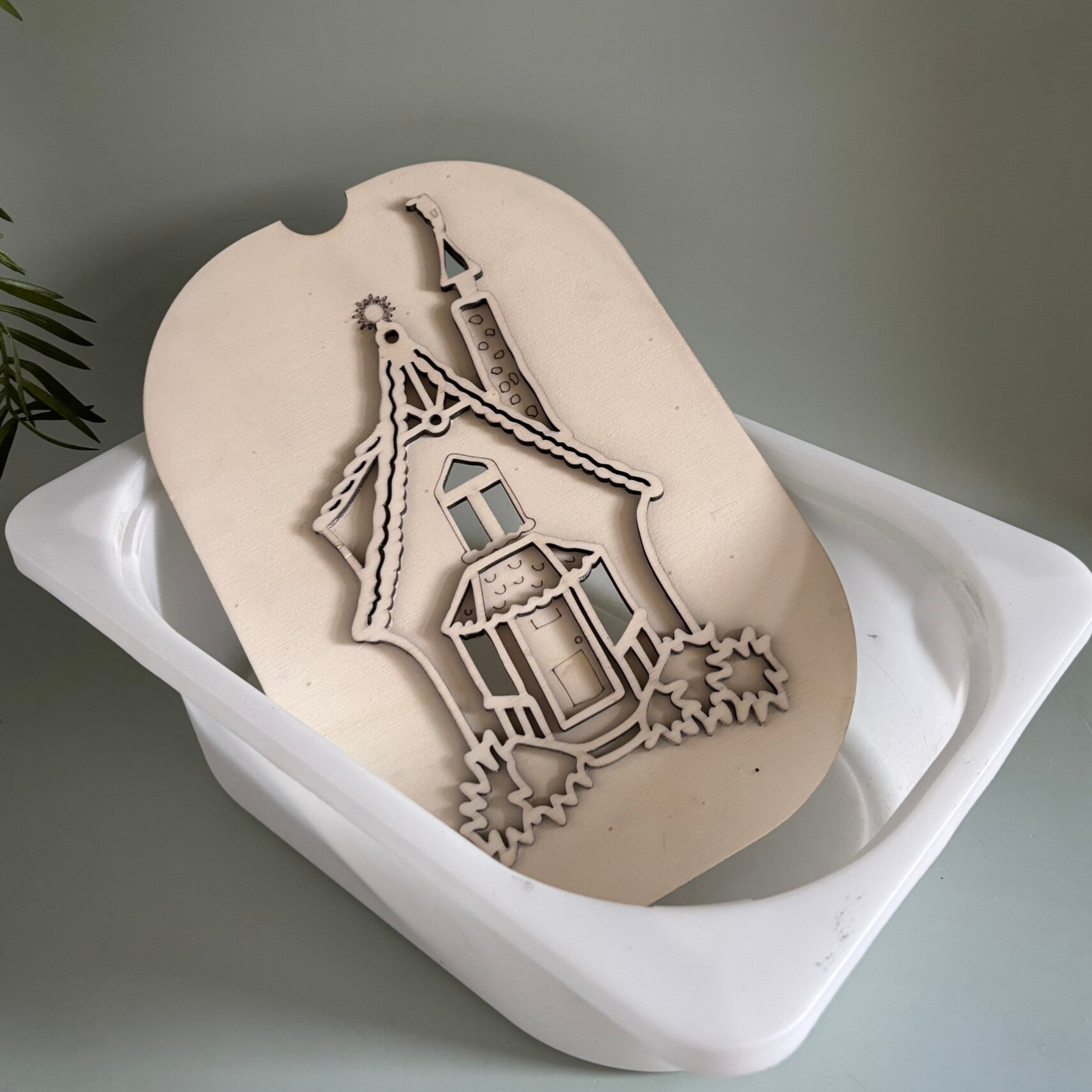Dit houtenframe is gemaakt voor de trofastbak van ikea. In het thema van het heksenhuisje.