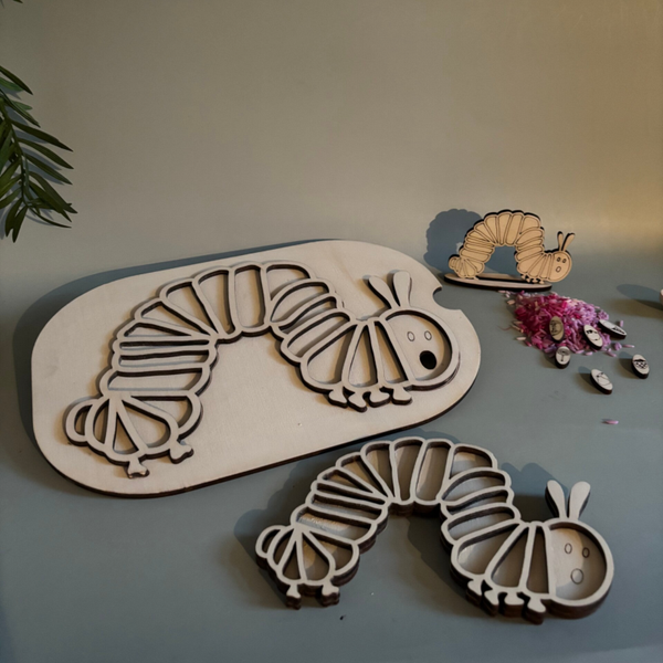 Speelframe in de vorm van rupsje nooit genoeg voor eindeloos speelplezier. Leuk speelmateriaal in combinatie met het boekje.