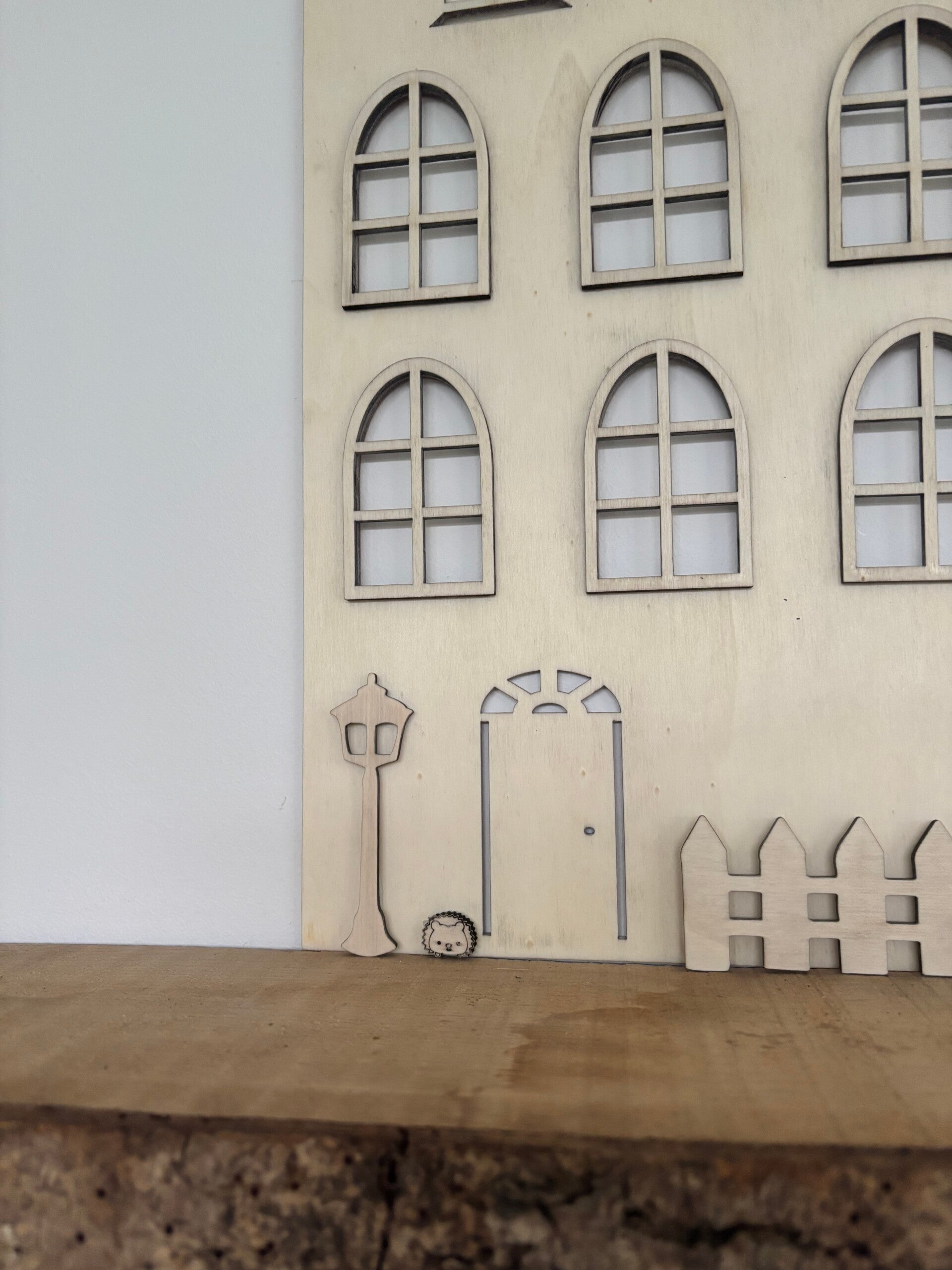 Dit wand poppenhuis kan je neerzetten maar je kunt het ook bevestigen aan de muur. U kunt deze bevestigen met dubbelzijdig tape(niet meegeleverd).