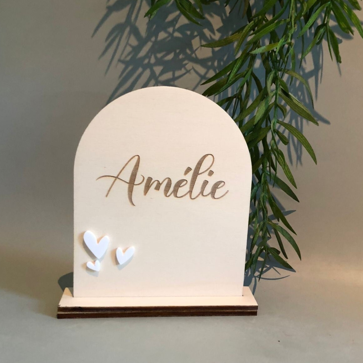 Op zoek naar het perfecte kraamcadeau dat zowel stijlvol als persoonlijk is? Dit unieke geschenk, met de combinatie van hout en acrylaat, voor een elegante mix van klassieke charme en moderne flair., wordt volledig gepersonaliseerd met de naam van de baby.