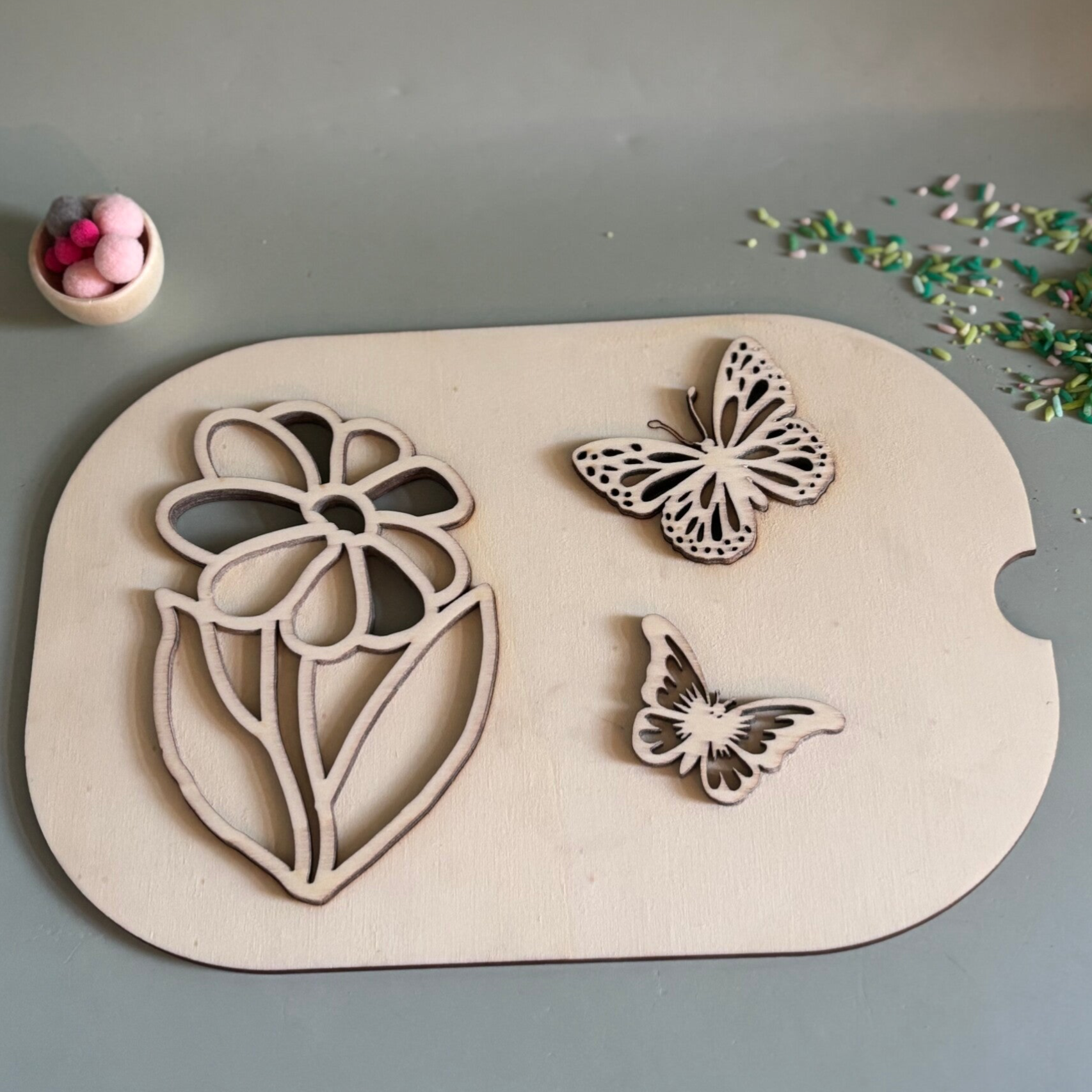 Deze inleg voor je trofastbak in de maat L(kleine bak) is een plaatje alleen heeft de ongelukkige vlinder een probleemje met zin voelspriet.