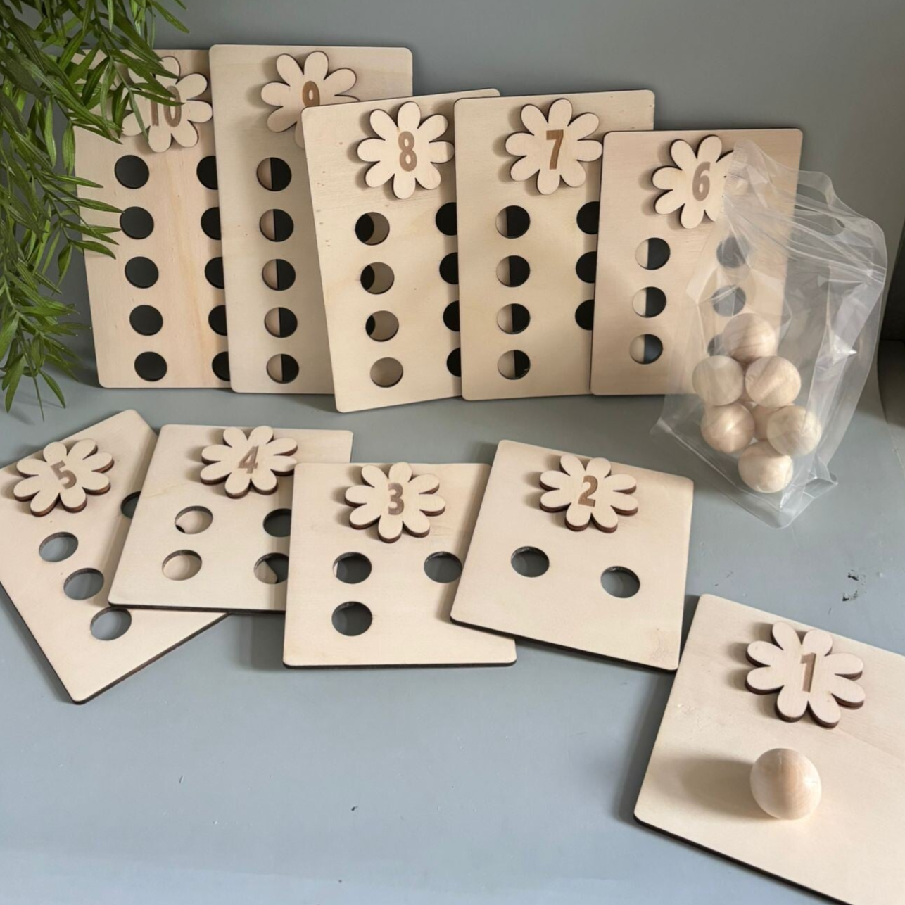 Laat kinderen op een speelse manier kennismaken met getallen met dit prachtige houten telspel. Ideaal om te leren tellen, sorteren en vergelijken!