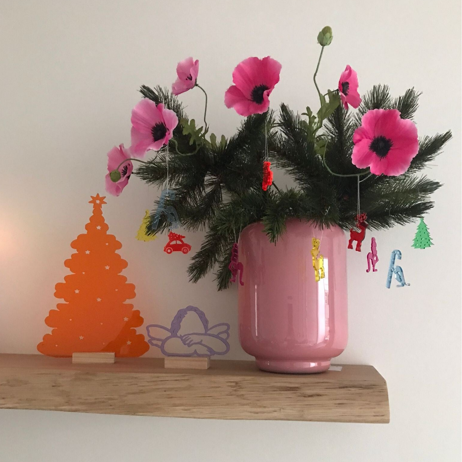 De kerstbomen zijn verkrijgbaar in verschillende maten en kleuren, (inclusief standaard) waardoor ze prachtig met elkaar te combineren zijn. Zet ze bij elkaar voor een speels effect of laat één exemplaar stralen als subtiele blikvanger.