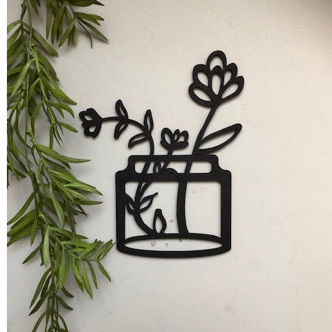 Bloemenvaas uit hout gesneden als wanddecoratie. Een plaatje voor aan de muur.